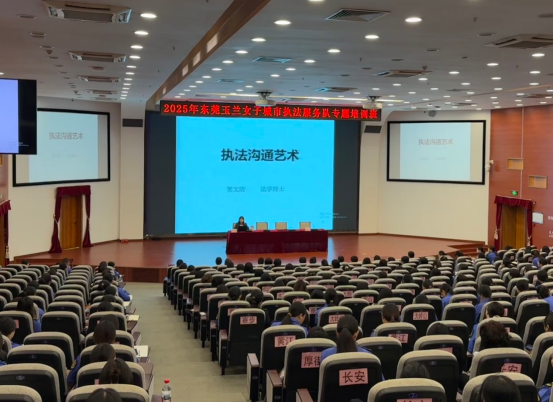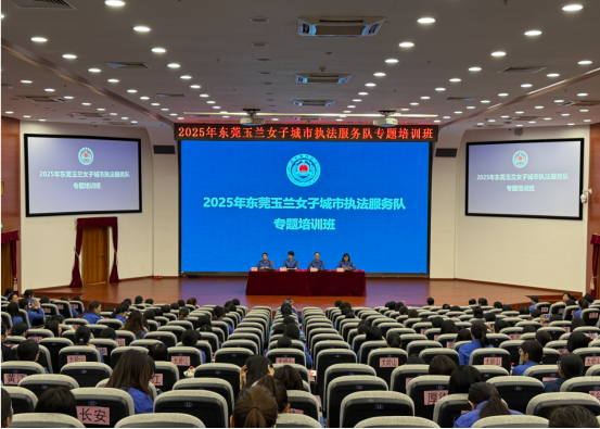 10月24日上午,2025年东莞玉兰女子城市执法服务队专题培训班在我校培训楼报告厅正式开班。市城市管理和综合执法局相关负责人以及市城管系统的200余名玉兰女子执法队队员参加了开班动员仪式。