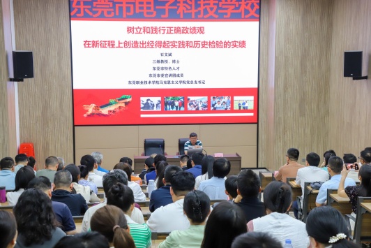3月24日下午,我校马克思主义学院联合终身教育学院(筹)赴东莞市电子科技学校,开展“树立和践行正确政绩观”学习教育专题宣讲活动。东莞市电子科技学校121名党员、中层干部及入党积极分子共同参加学习,我校马克思主义学院党总支书记石文斌教授作专题讲座。